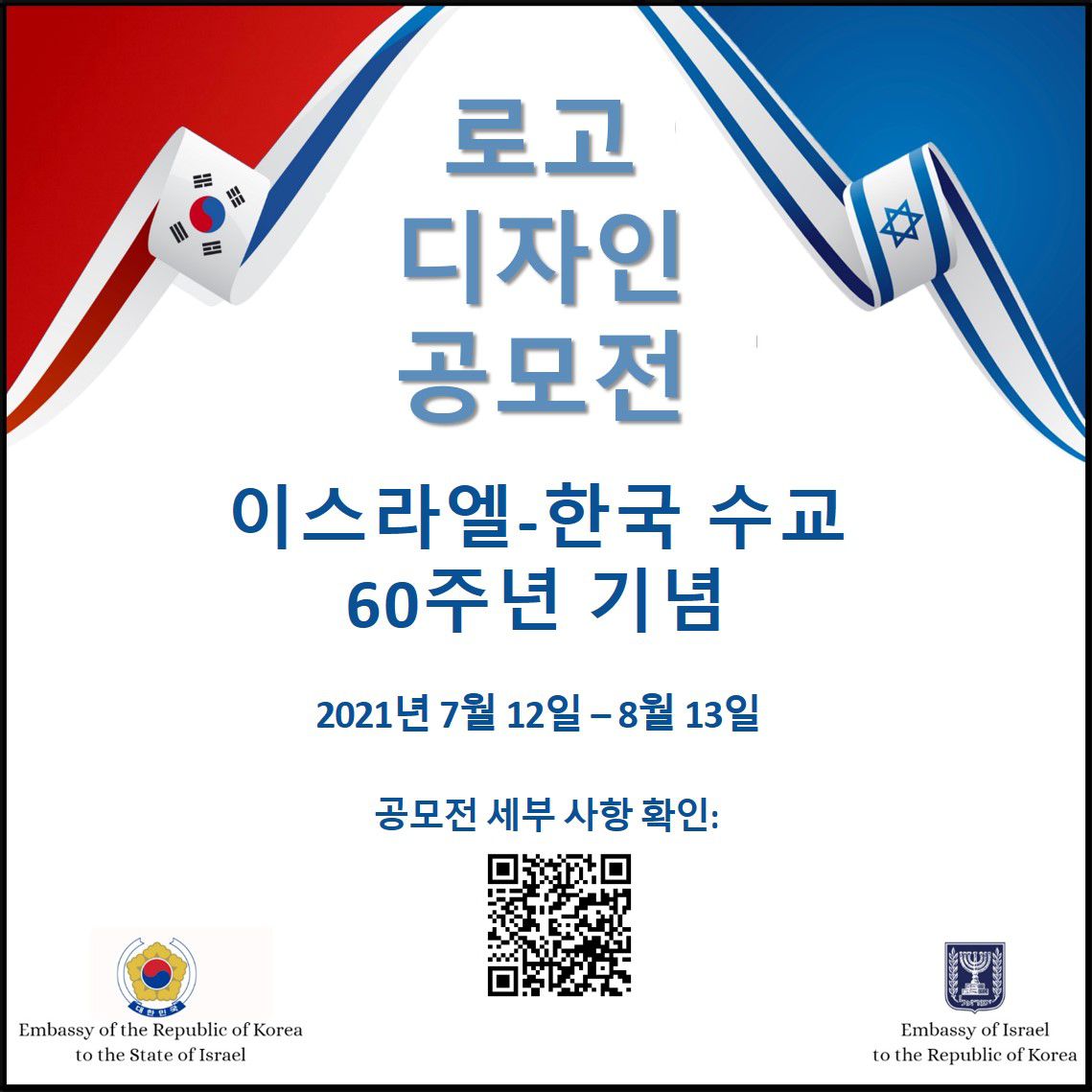 주한이스라엘대사관과 주이스라엘대한민국대사관은 2022년 수교 60주년을 기념하여 양국의 관계를 공고히하는, 역동적인 정신을 담은기념 로고 공모전을 개최합니다.