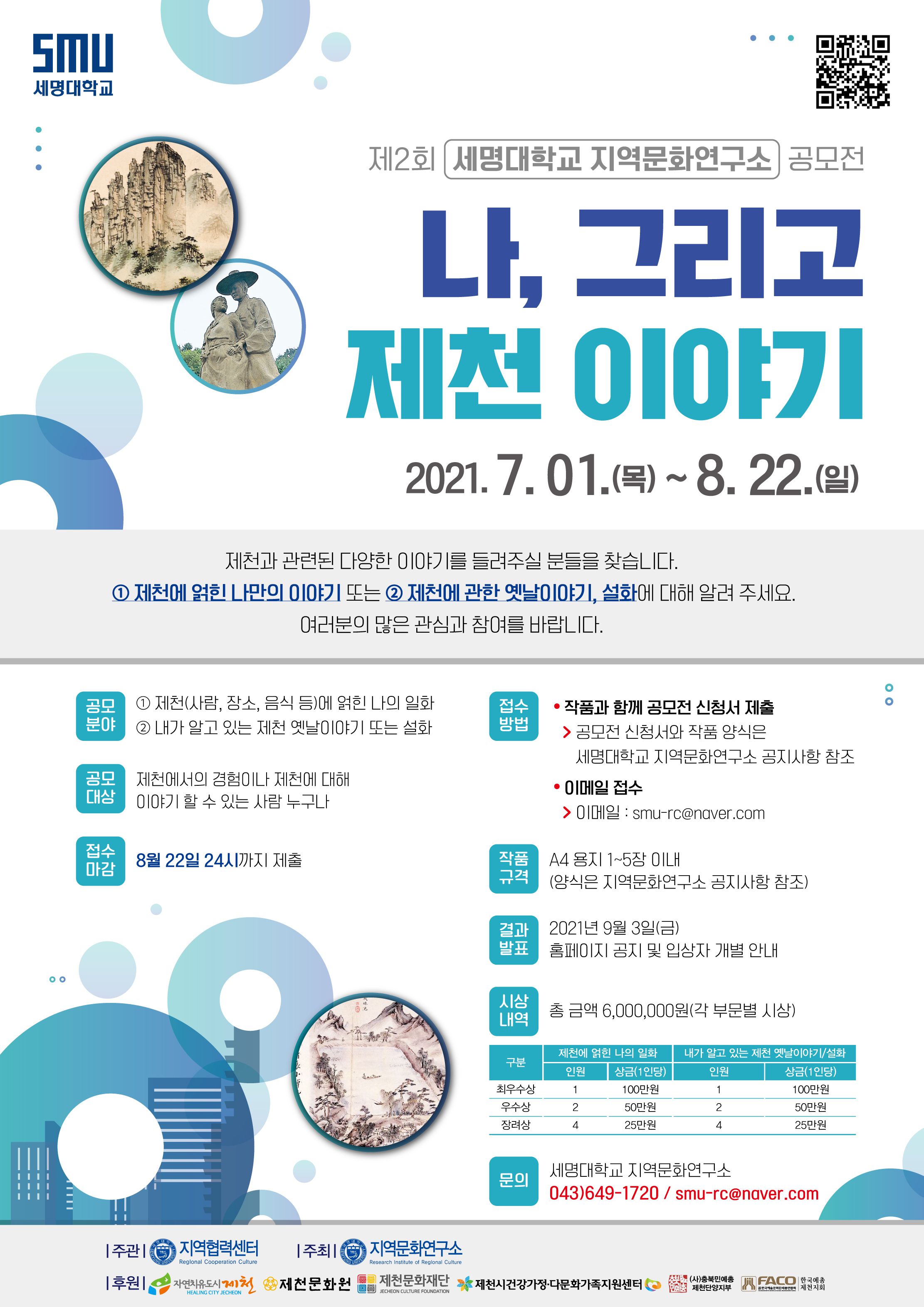 * 공모전 신청서와 작품 양식은 세명대학교 지역문화연구소 공지사항 참조