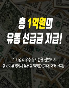 100명의 우수 뮤지션을 선발하여, 셀바이뮤직에서 유통할 앨범(음원)에 대해 선지급!