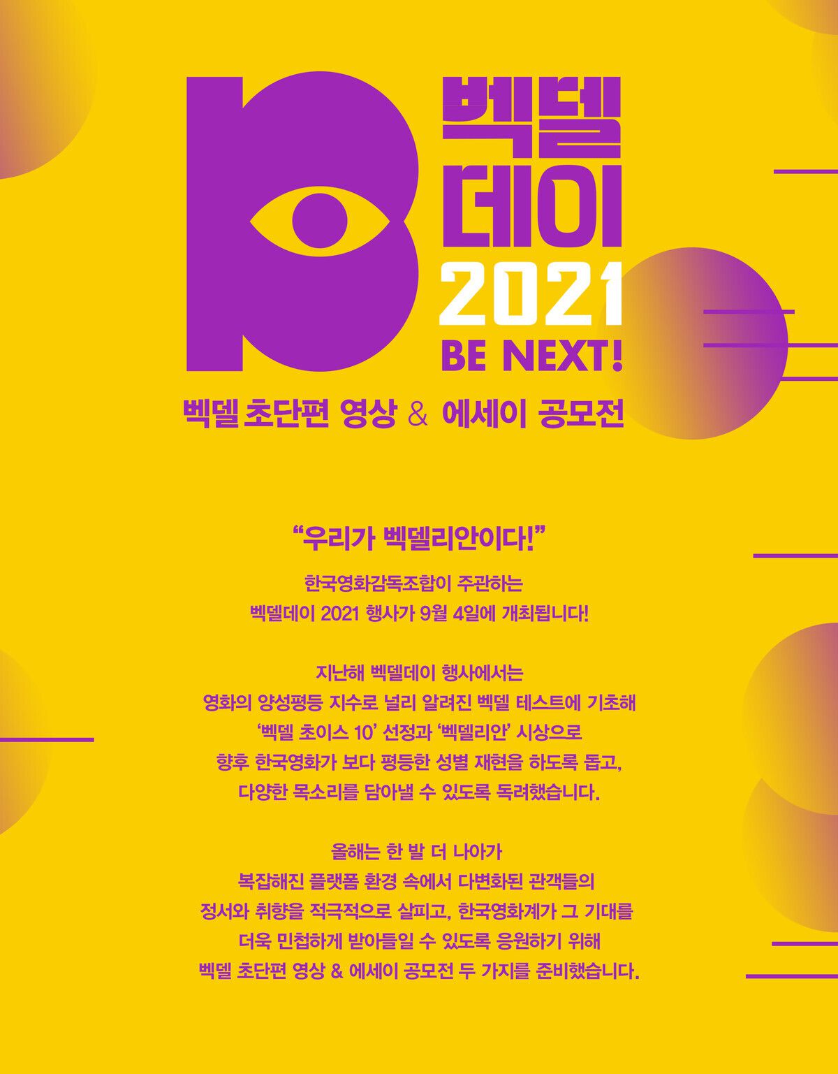 한국영화감독조합이 주관하는 벡델데이 2021 행사가 9월 4일에 개최됩니다!