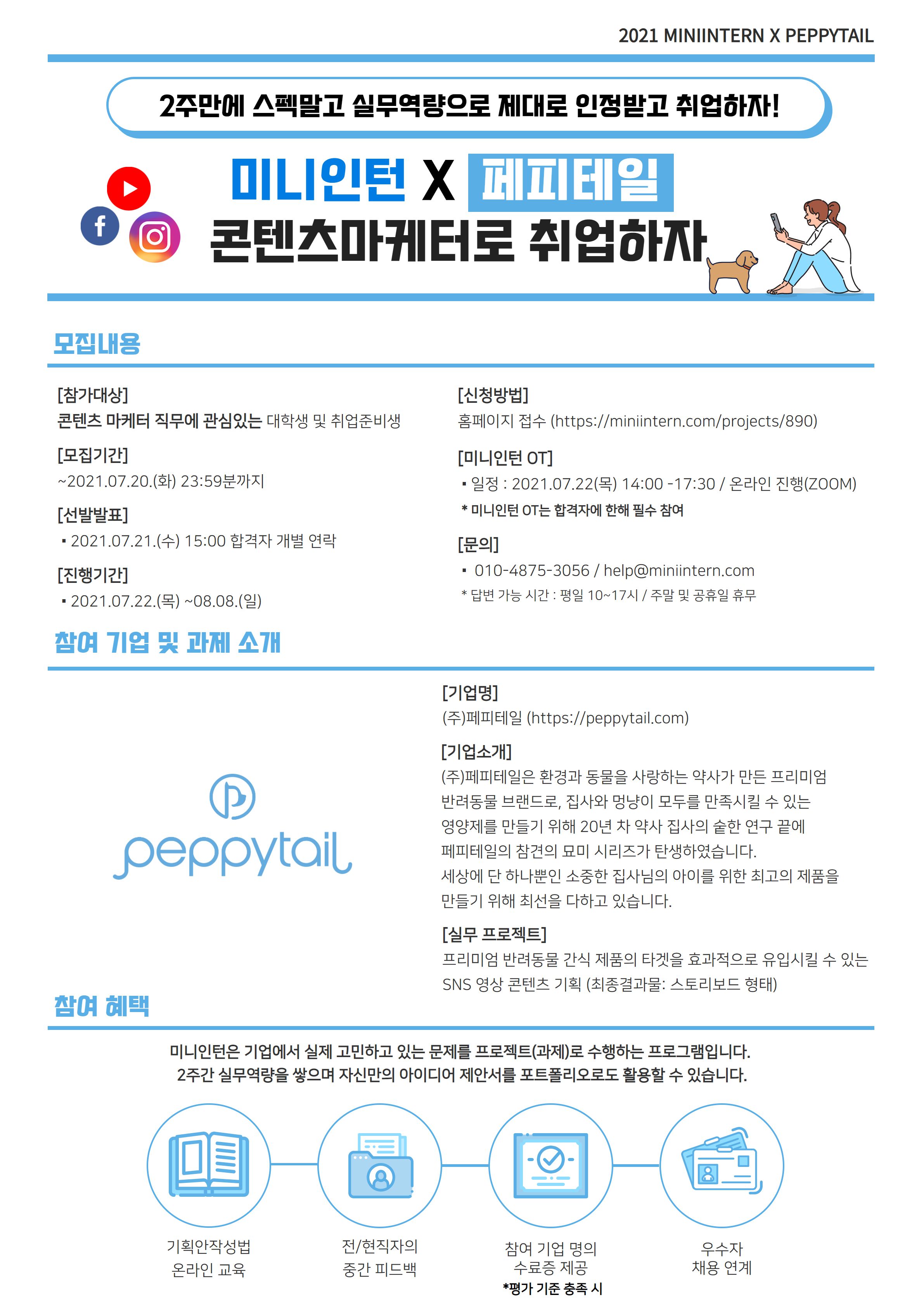 [미니인턴X페피테일] 실무 역량 인정받고, 2주 후 콘텐츠 마케터 혹은 기획PM으로 취업해요!(~7/27)