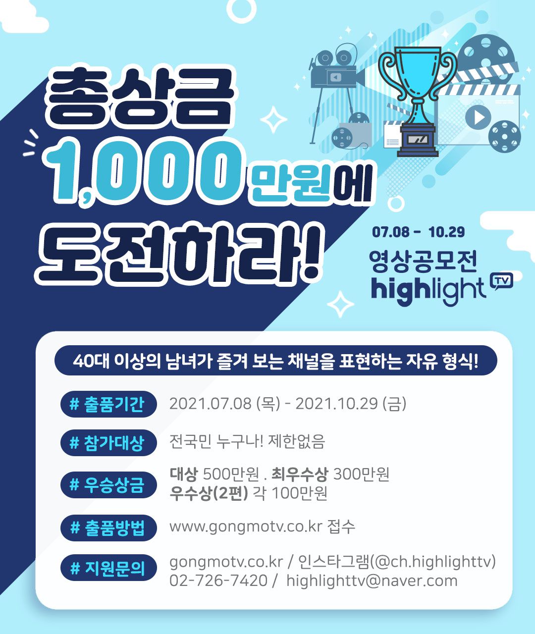 - 문 의 및 참 고 : 공모전 홈페이지(www.gongmotv.co.kr) / 인스타그램(@ch.highlighttv)