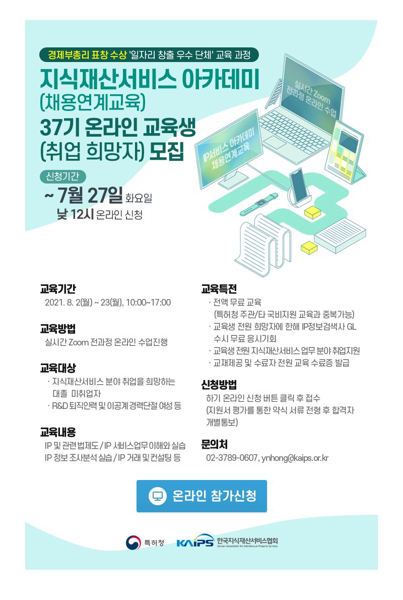 - 특허청의 주관으로 한국지식재산서비스협회에서 진행하는 무료 교육인 37기 "IP서비스 아카데미"입니다.