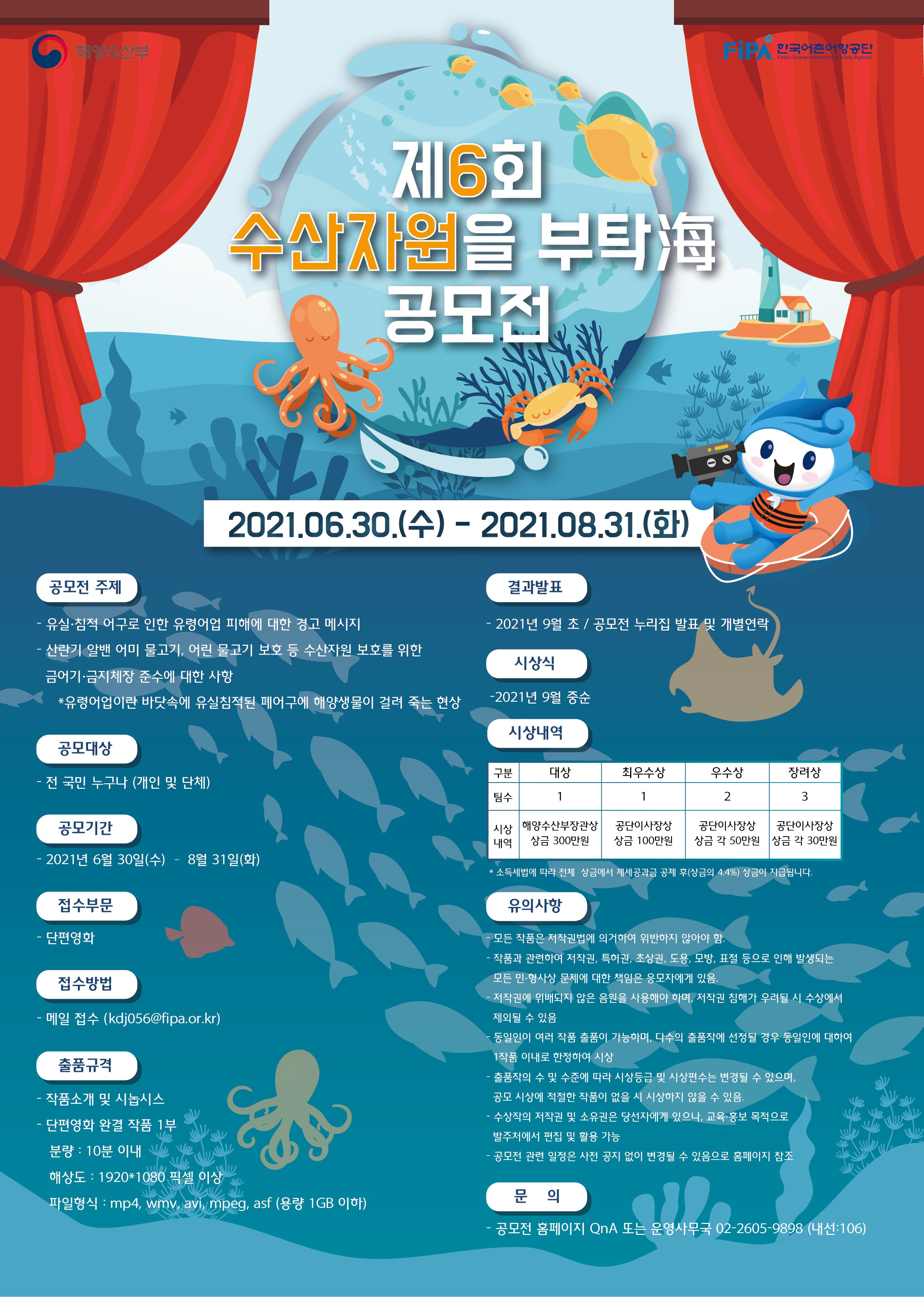 - 결과 발표 : 2021년 9월 초 / 한국어촌어항공단 누리집 발표 및 개별 연락