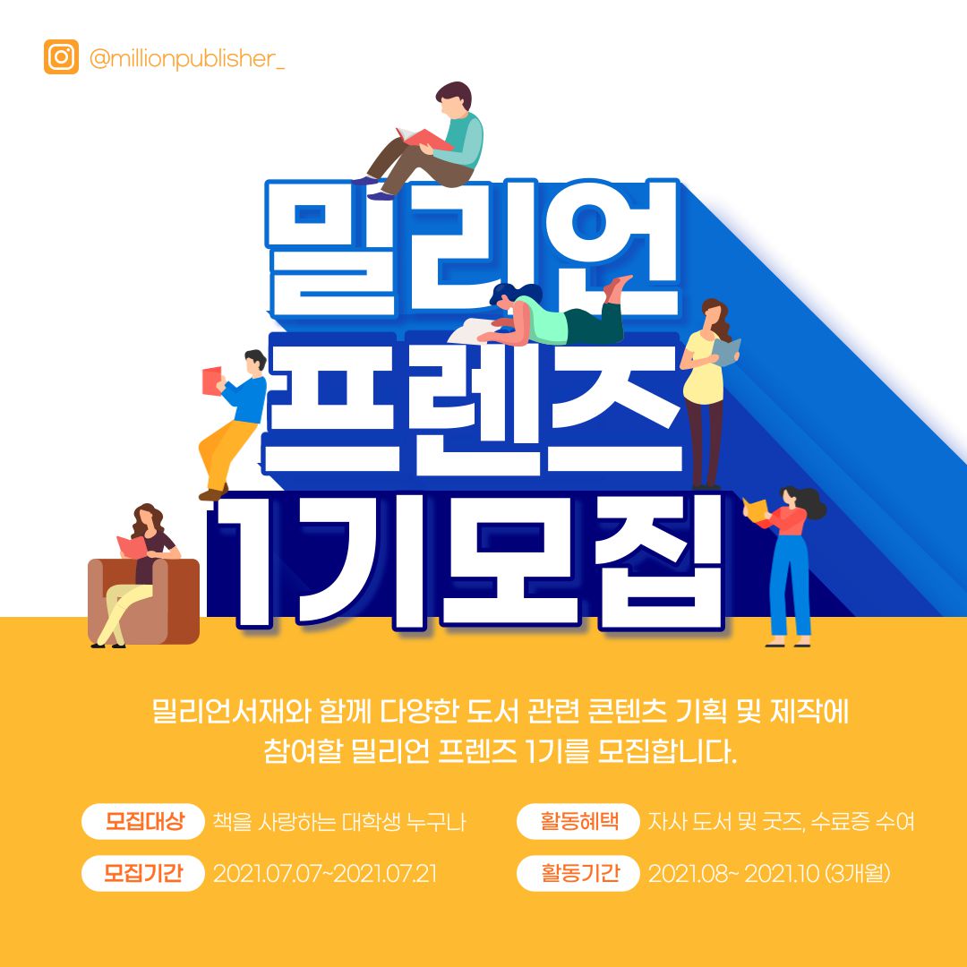밀리언서재에서 밀리언프렌즈 1기 (밀리언서재 서포터즈)를 모집합니다