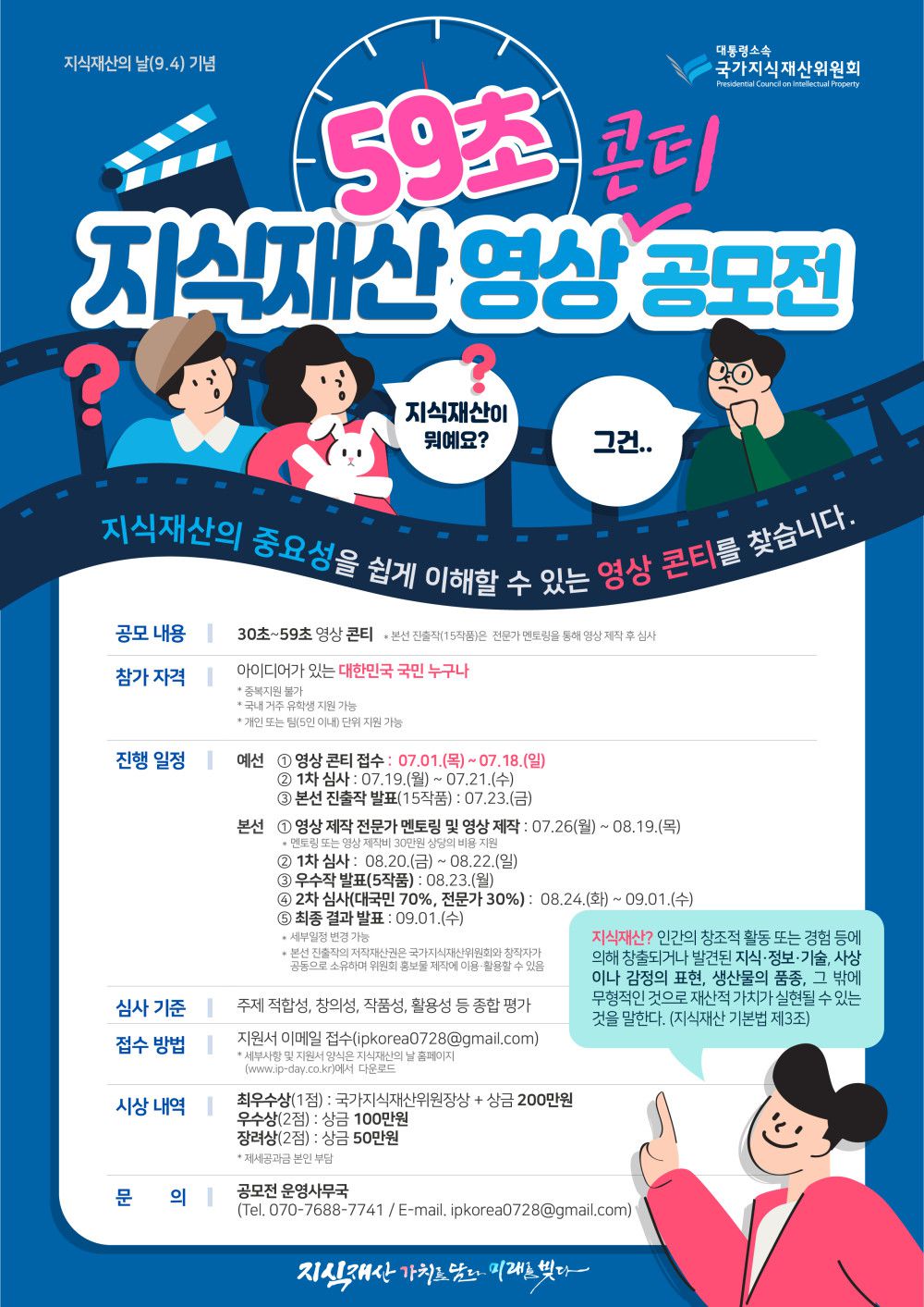 - 공모전 운영사무국(Tel. 070-7688-7741 / E-\mail. ipkorea0728@gmail.com)