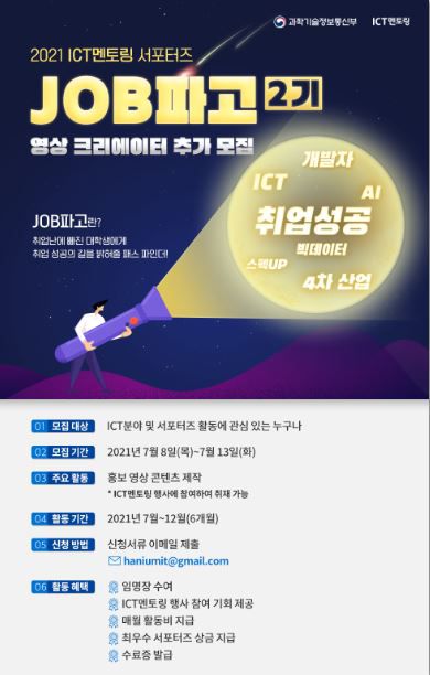 [2021 ICT멘토링 서포터즈 ‘JOB파고’ 2기 추가 모집]