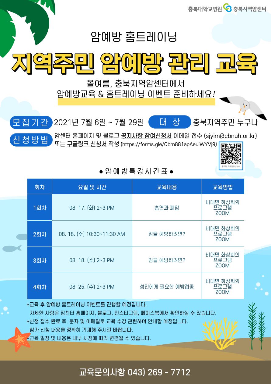 @ 2021년 충북지역암센터는 지역도민의 보건 향상을 위하여 지역사회 교육을 진행하고자 합니다.