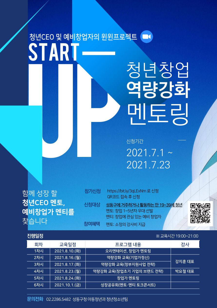 [역량강화/멘토링] 청년CEO 및 예비창업자의 윈윈프로젝트, START-UP!(~7/23)