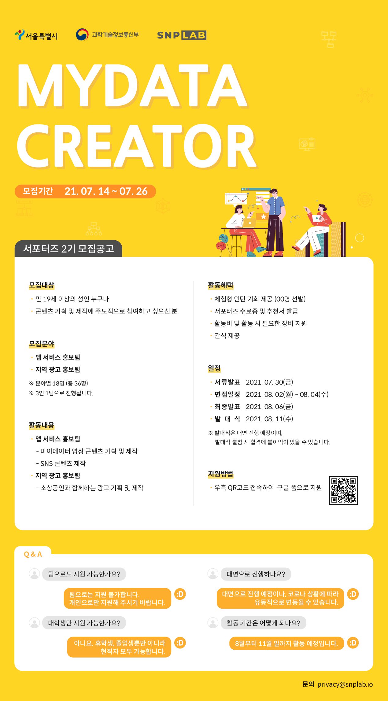 서울시 & 과기정통부 & SNPLab에서 서포터즈를 모집합니다.