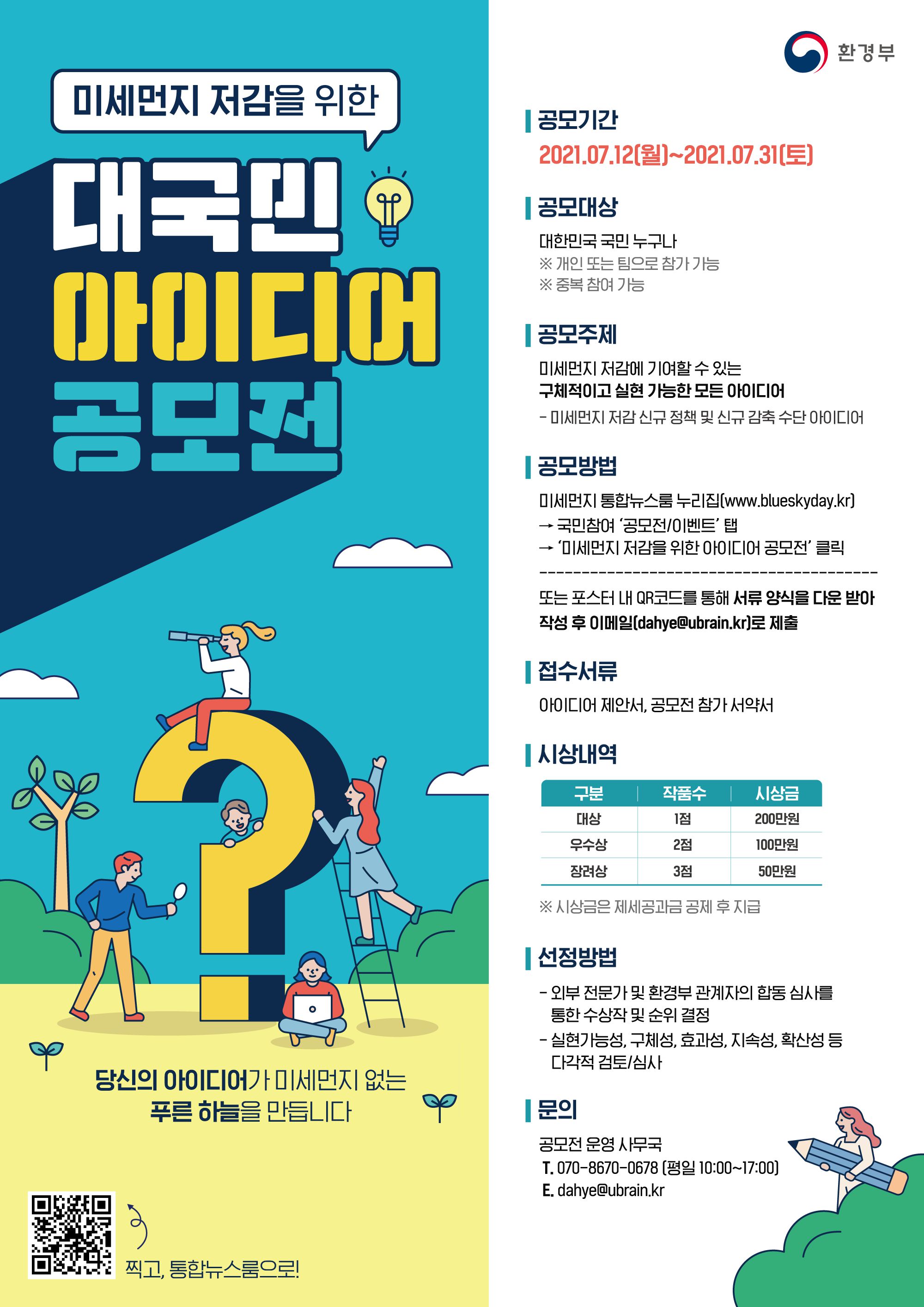 → 국민참여 ‘공모전/이벤트’탭 → ‘미세먼지 저감을 위한 아이디어 공모전’ 클릭