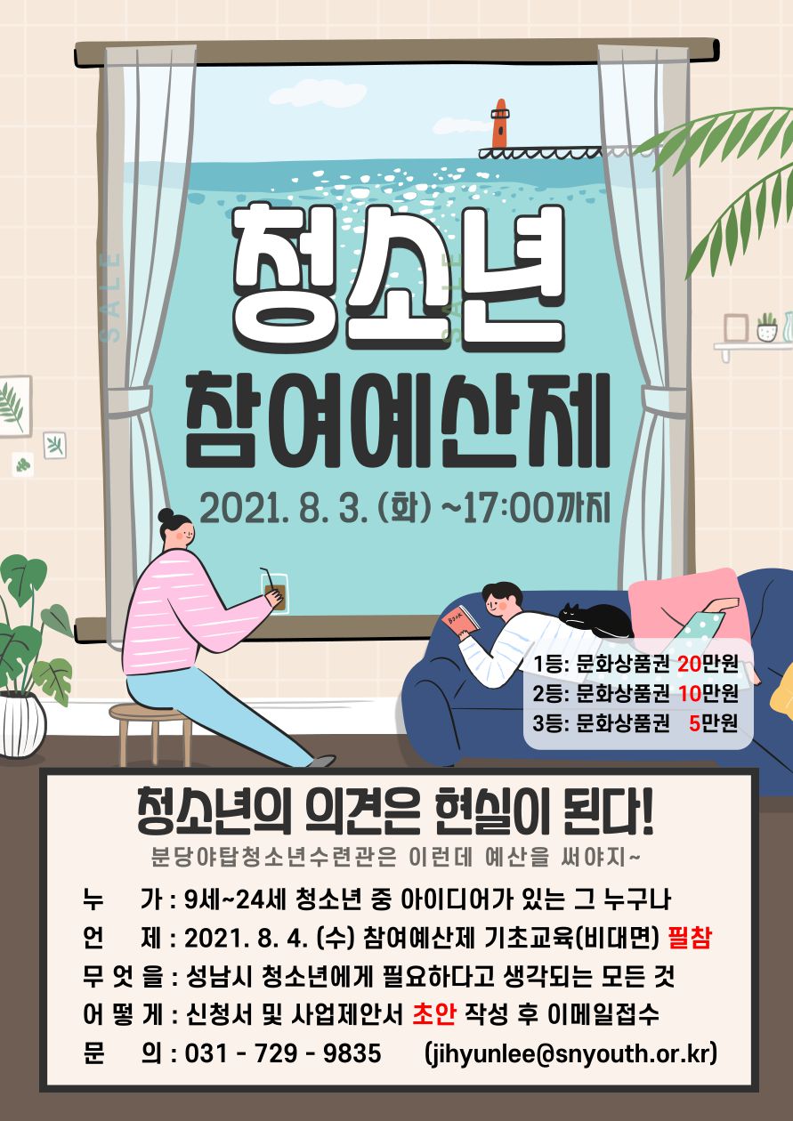분당야탑청소년수련관에서 청소년참여예산제에 도전할 참신한 아이디어를 찾습니다!