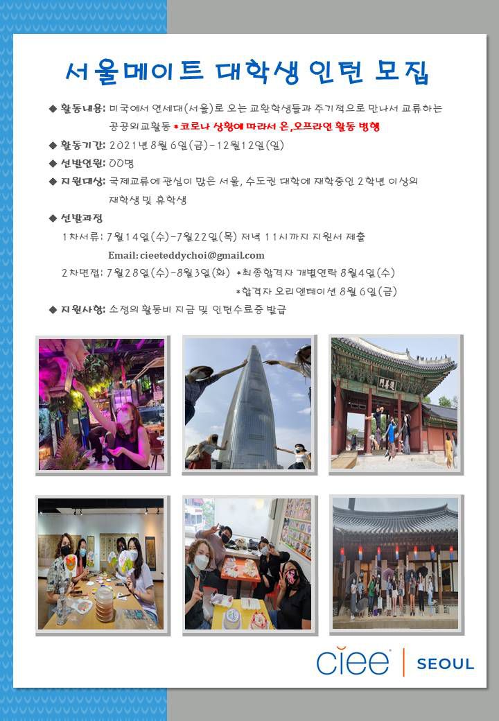 공공외교활동에 관심이 많은 서울메이트 무급 인턴 모집