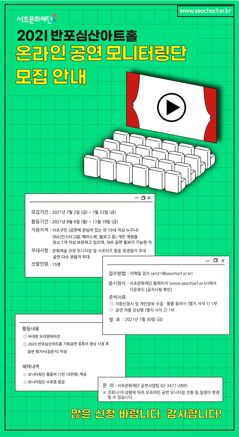 2021 서초문화재단 반포심산아트홀 온라인 공연 모니터링단 모집 안내