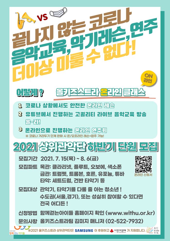 - 매주 온라인(오프라인) 레슨 및 합주에 원활하고 성실히 참여할 수 있는 아이들
