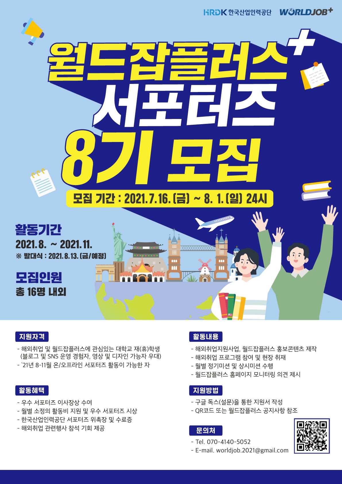 - 포스터 QR코드 또는 월드잡플러스 공지사항 참조