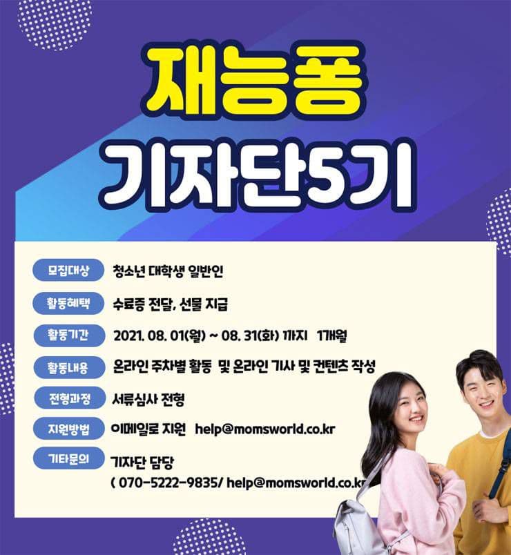 ■ 모집기간 : 2021.07.12(월) ~ 2021.07.30(일) 마감