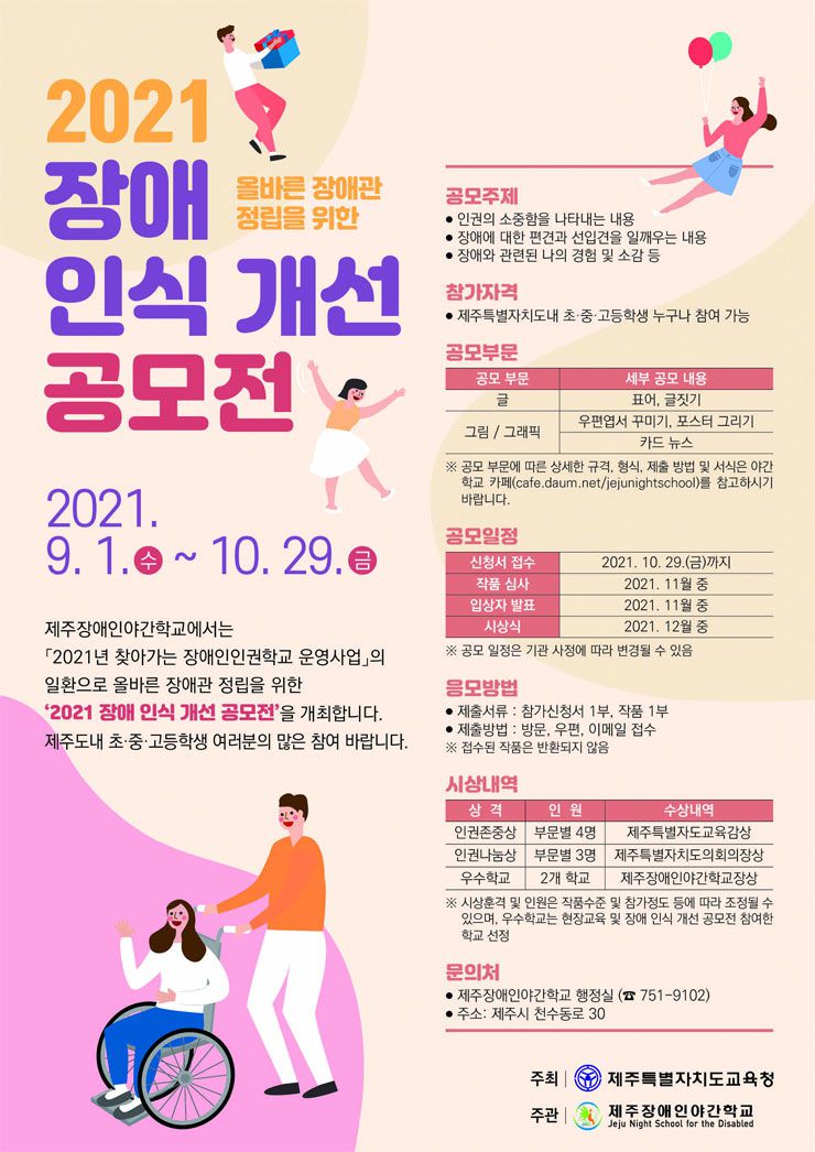- 접 수 처 : 제주장애인야간학교 공모전 담당자 앞