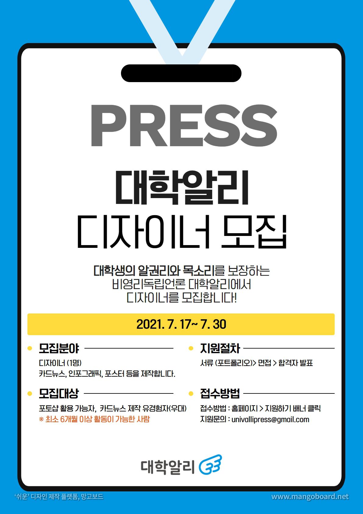비영리 독립언론 '대학알리' 편집국 디자이너 모집