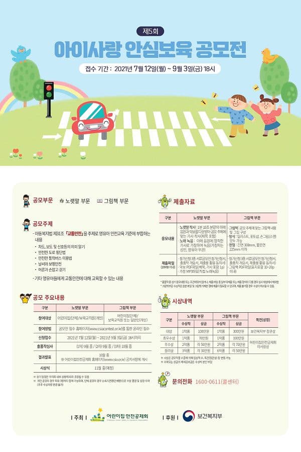 · 노랫말 작사: 1분 10초 분량의 아래 음원과 악보를 다운받아 공모 주제에 맞는 가사 작사 (제목 포함) · 노래 녹음: 아래 음원에 창작한 가사로 가창하여 녹음 (가창자는 성인, 영유아 무관) |