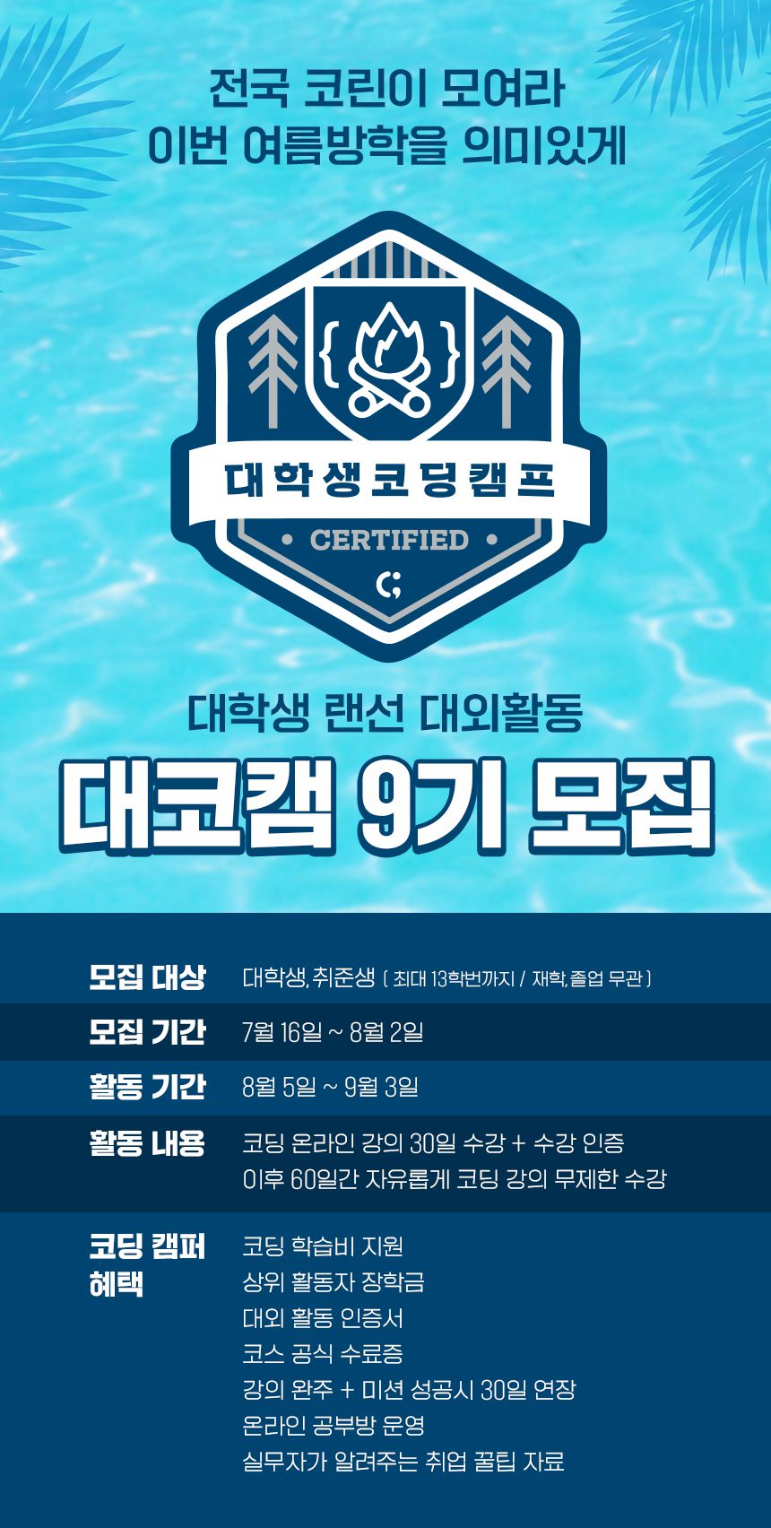 검증한 '대학생 코딩캠프 9기' 가 준비되어 있어요.