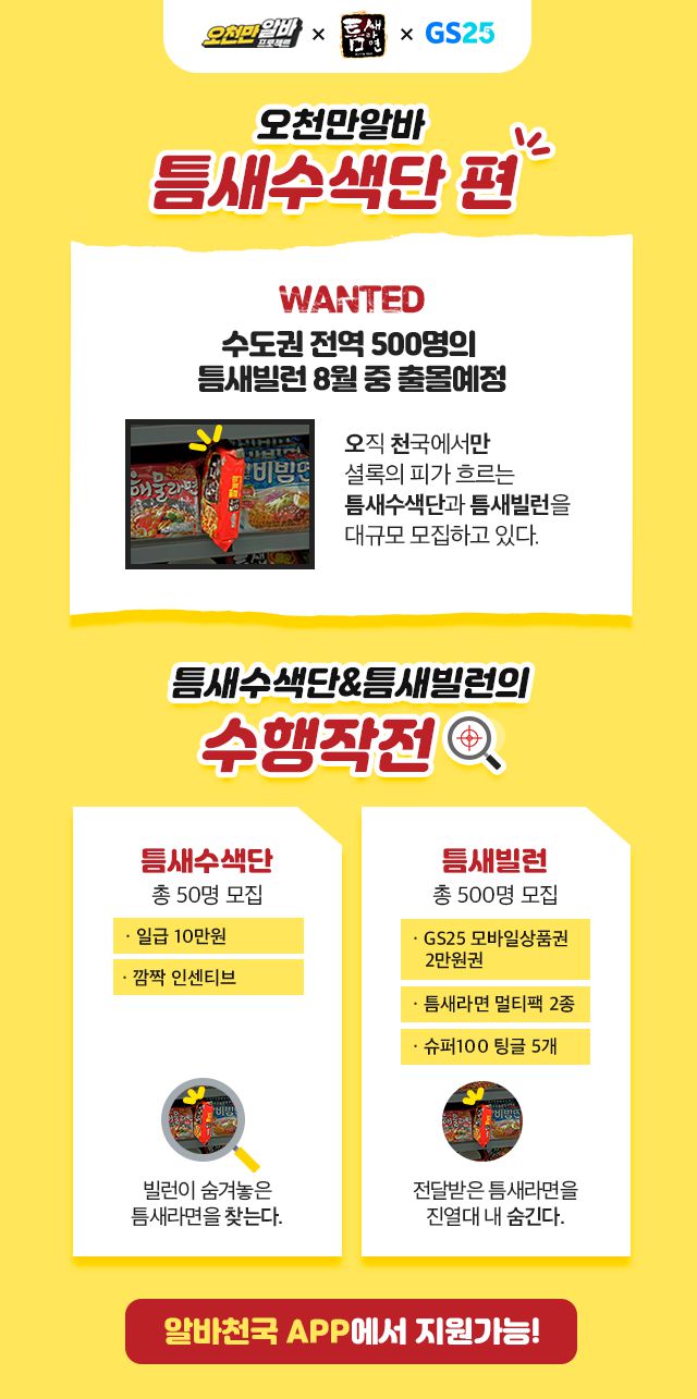 '오천만알바'가 '팔도 틈새라면’ 그리고 ‘GS25’ 와 만났어요.