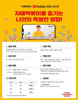 - 본인의 유튜브 계정에 영상 업로드 후 자매떡볶이 공식 홈페이지에 개제된 신청서를 작성하여 접수해주세요.