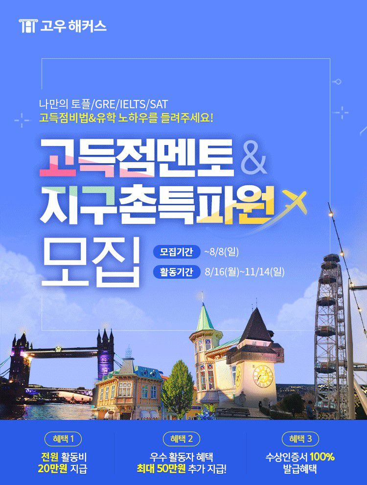 최대 70만원!활동비 지원받고 집에서 대외활동 스펙쌓자★고득점멘토 6기&지구촌특파원 7기 모집!(~8/8)