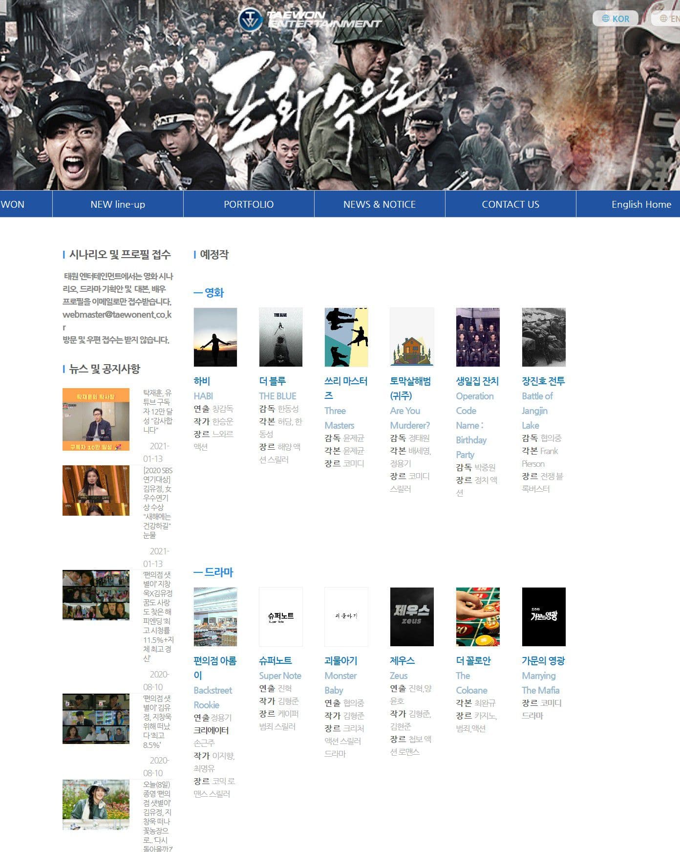 - 태원엔터테인먼트에서 개발중인 드라마/영화에 대한 리뷰