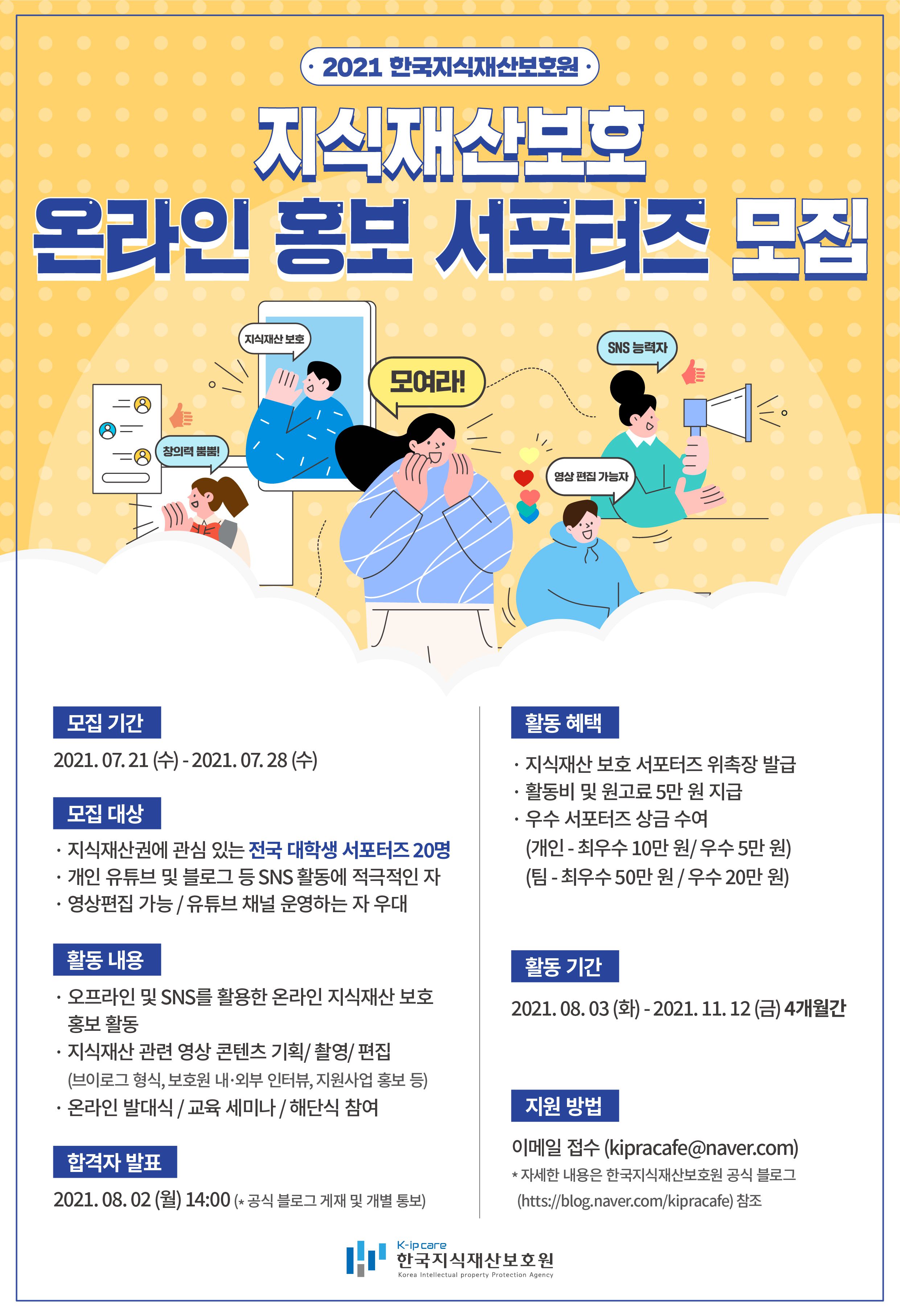 - 지식재산권에 관심 있는 전국 대학생 서포터즈 20명