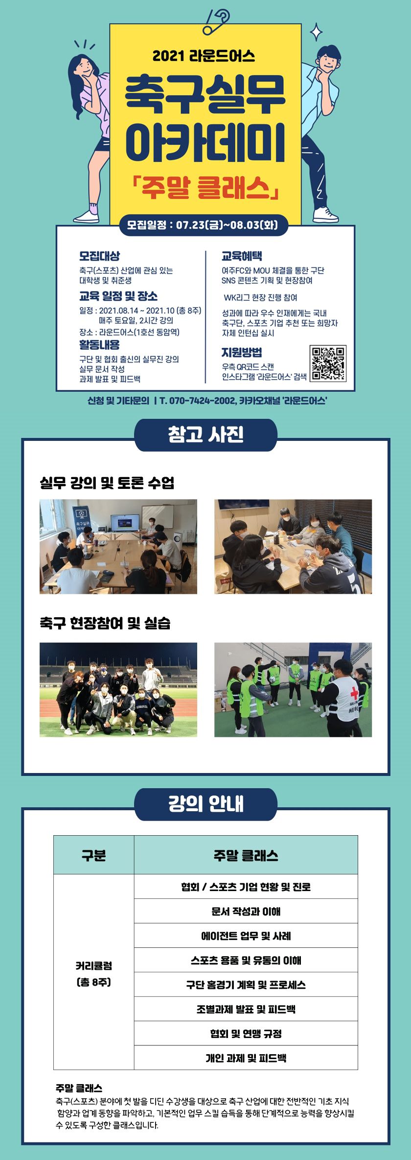 안녕하세요. 라운드어스에서 축구실무아카데미 「주말클래스」를 모집합니다.