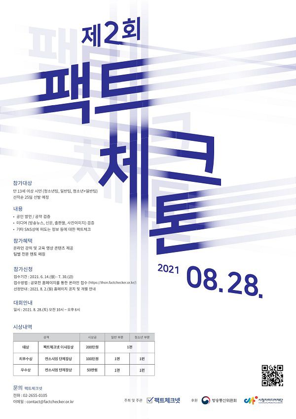 - 8/28(토) 오전 10시~ 오후 6시 : 팩트체크톤 대회(대면 진행)
