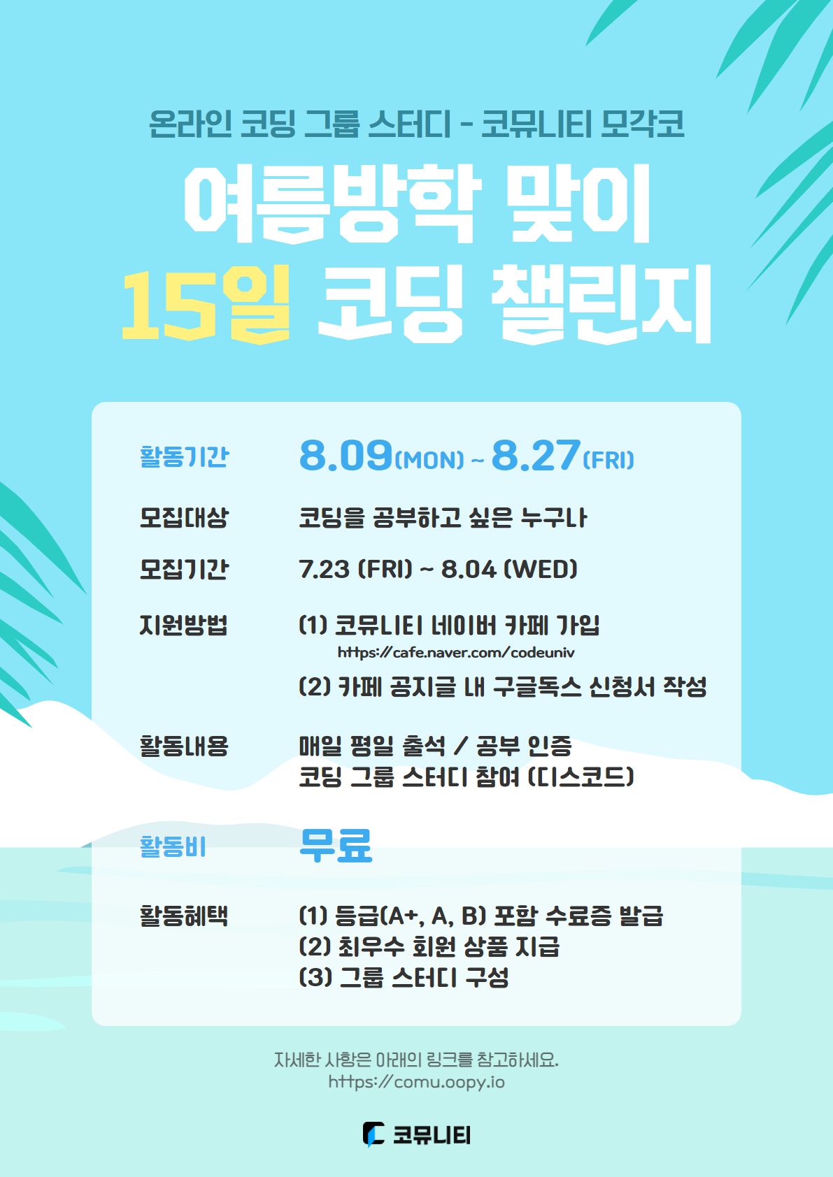 7월에 이어 더욱 새롭고 재밌게 돌아온 코뮤니티 모각코 8월 과정!