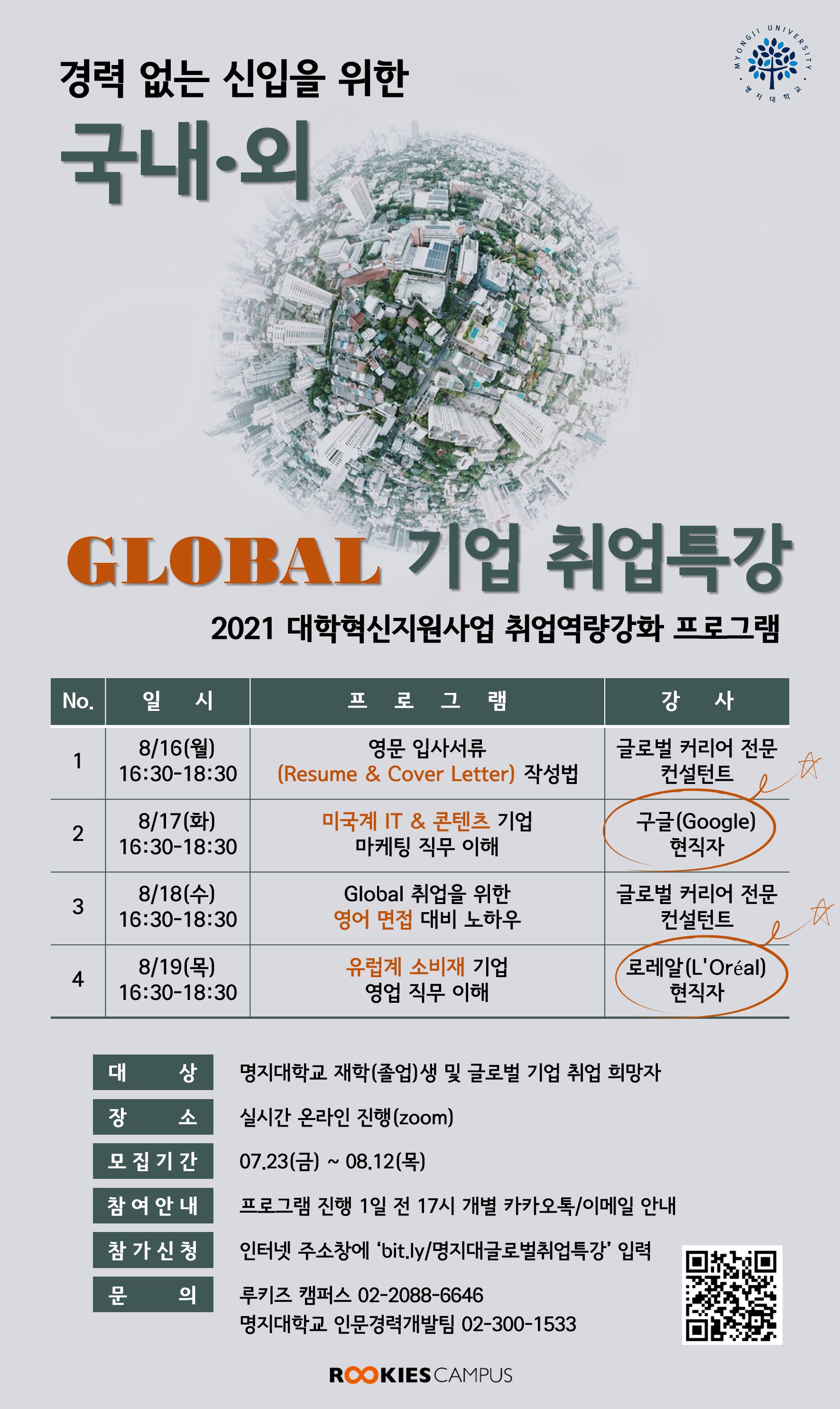 마감 전 신청하러 가기: 인터넷 주소창에 ‘bit.ly/명지대글로벌취업특강’ 입력