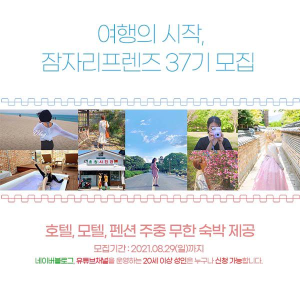 [숙박서포터즈] 잠자리프렌즈37기 모집/주중숙박권무제한지급 (~8.29)