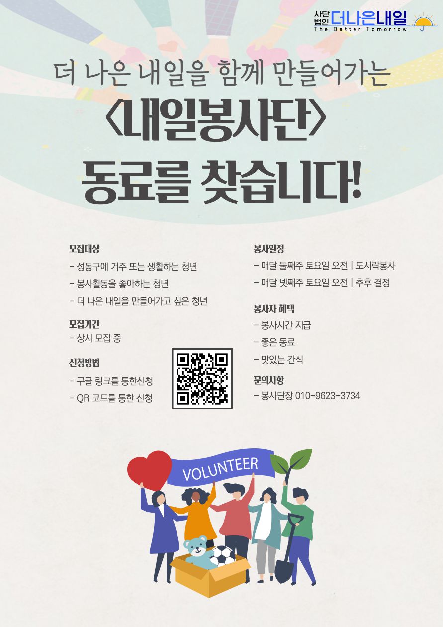 <내일봉사단>은 사단법인 '더나은내일' 소속 봉사단이며,