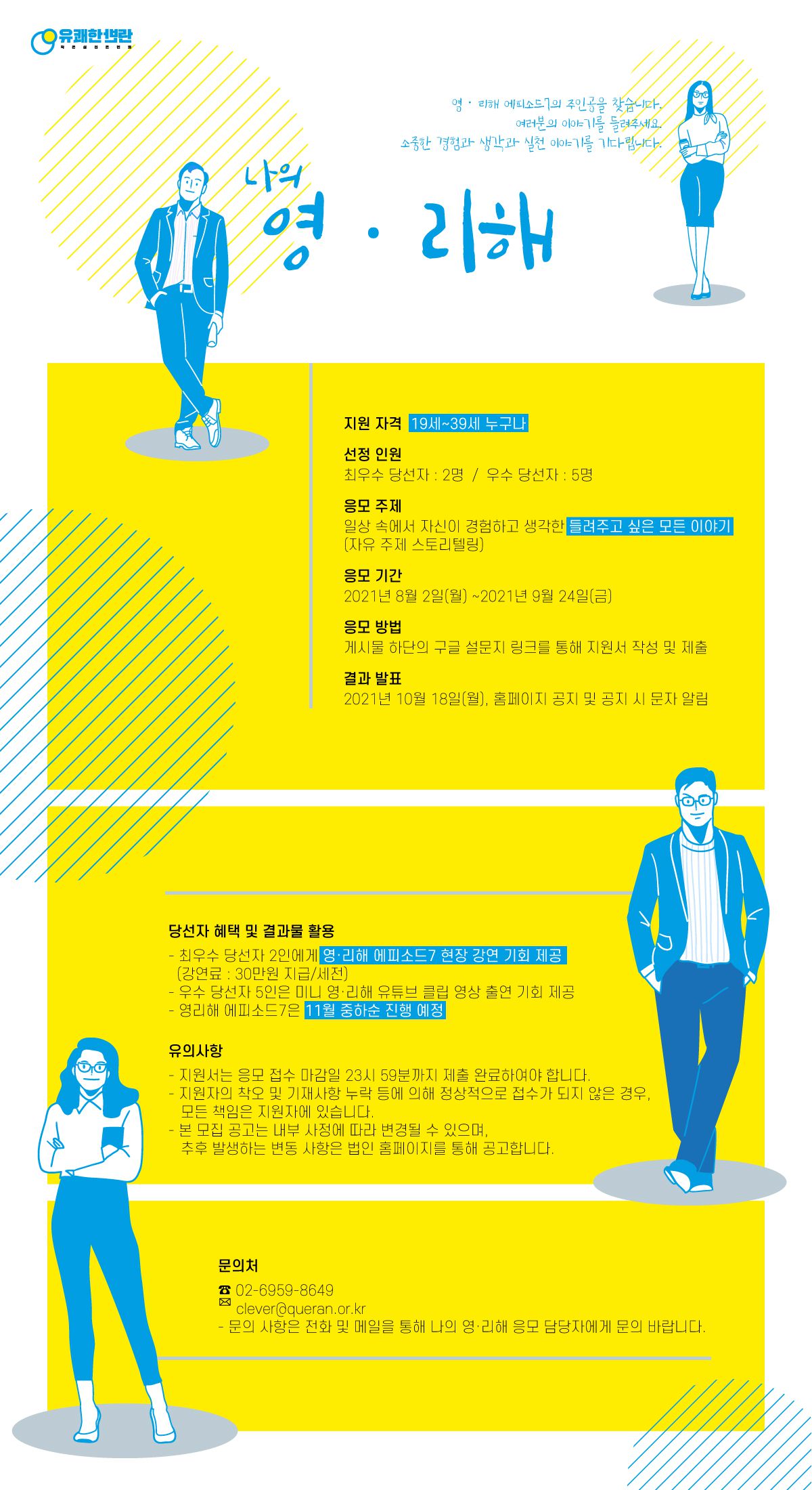 - 최우수 당선자 2인에게 영·리해 에피소드7 현장 강연 기회 제공(강연료 : 30만원 지급/세전)