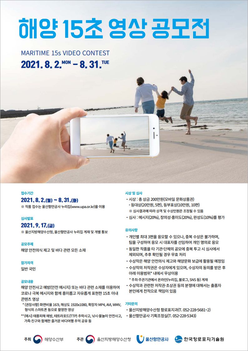 ※ 해양 안전사고 예방을 위한 메시지를 담거나 가족·친구와 함께한 바다 여행 추억의 소재를 다룬 짧은 영상이면 됩니다.