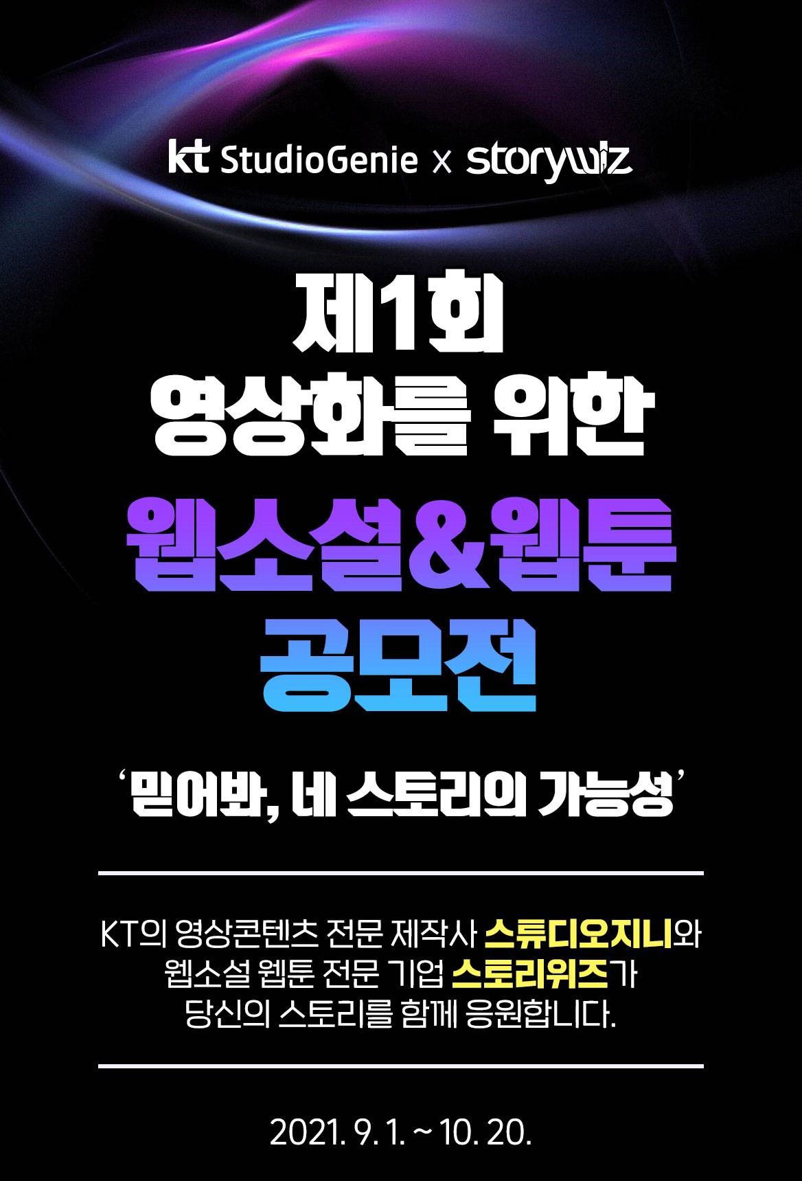 KT의 영상콘텐츠 전문 제작사 스튜디오지니와 웹소설 웹툰 전문 기업 스토리위즈가 당신의 스토리를 함께 응원합니다.