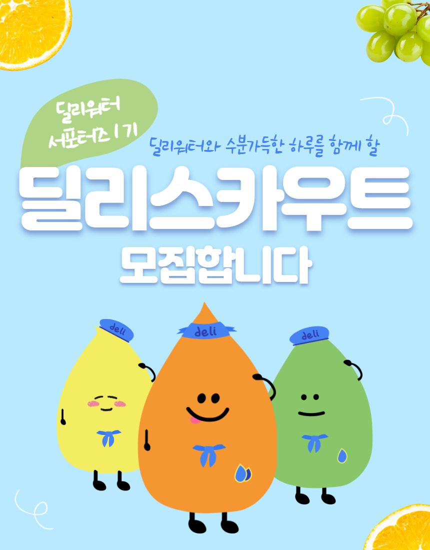딜리워터에서 통통튀는 아이디어를 뽐낼 대학생 서포터즈 딜리스카우트 1기를 모집합니다!