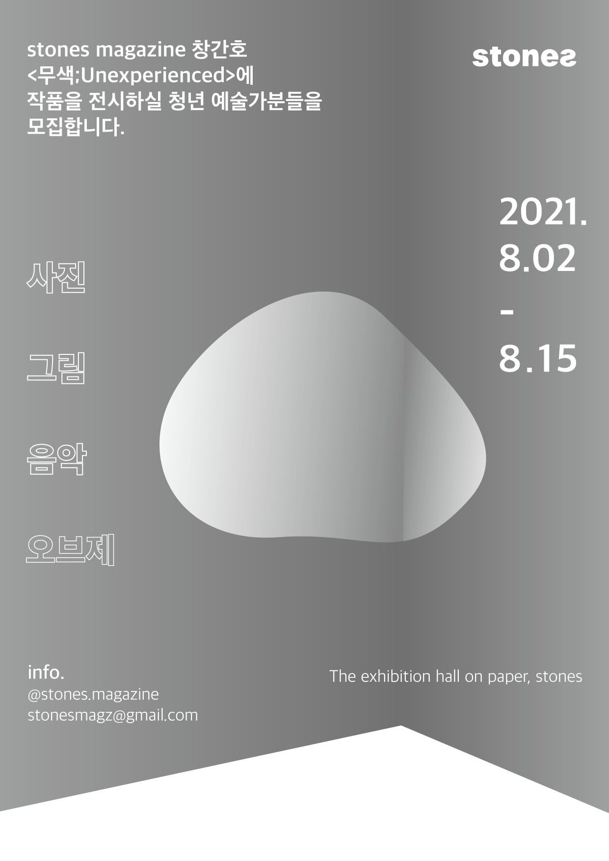 ⚪️stones magazine 창간호 <무색; Unexperienced>에 작품을 전시하실 예술가분들을 모집합니다⚪️