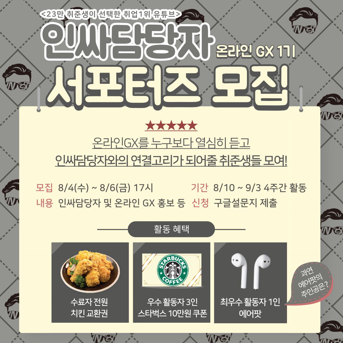 함께 온라인 GX를 들으며 유튜브 인싸담당자를 홍보할 ❗인싸담당자 SNS 서포터즈 온라인GX 1기❗를 모집합니다.