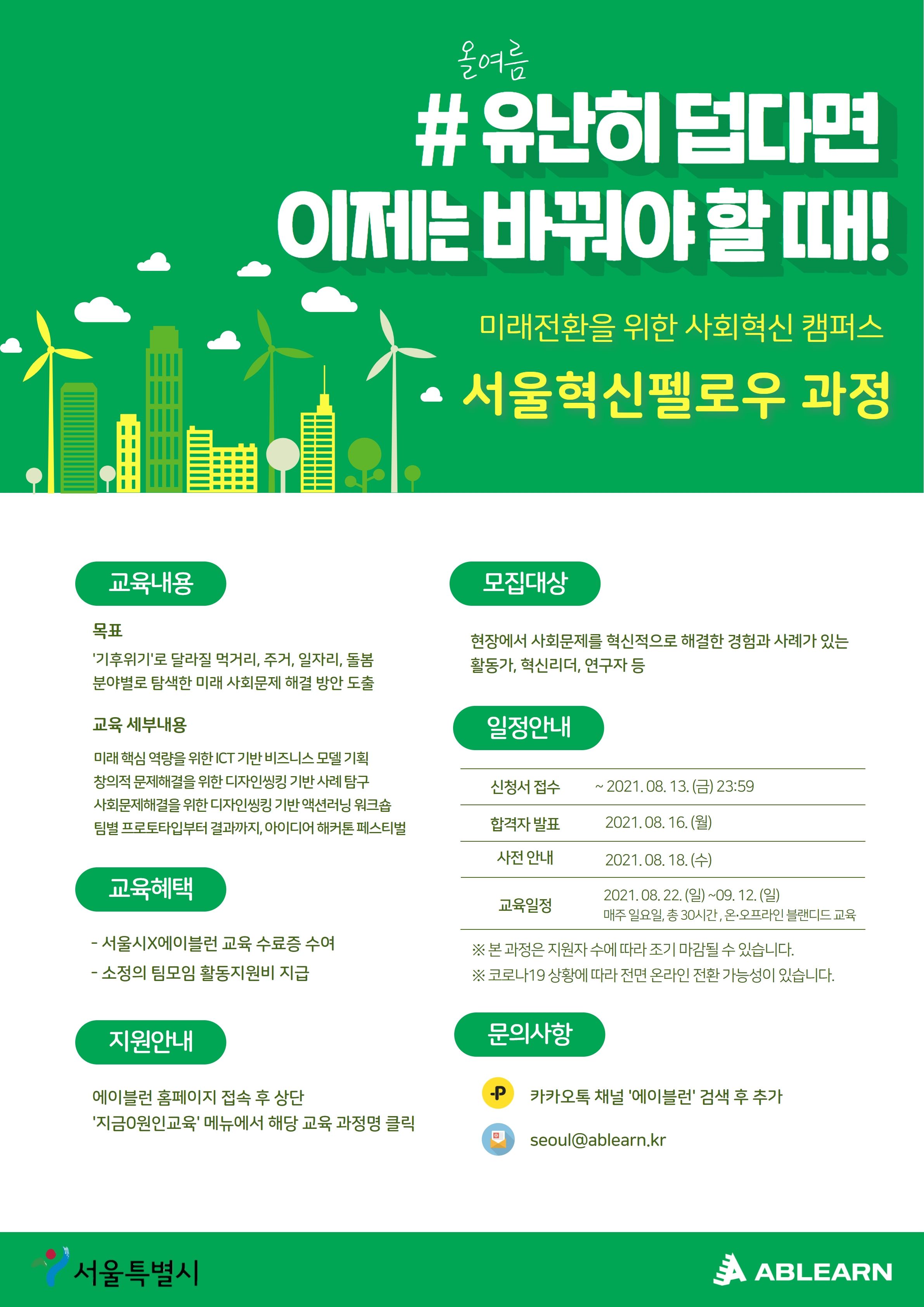 서울시 사회협력과와 에이블런이 함께하는 미래전환을 위한 사회혁신 캠퍼스 [서울혁신펠로우 과정]입니다.