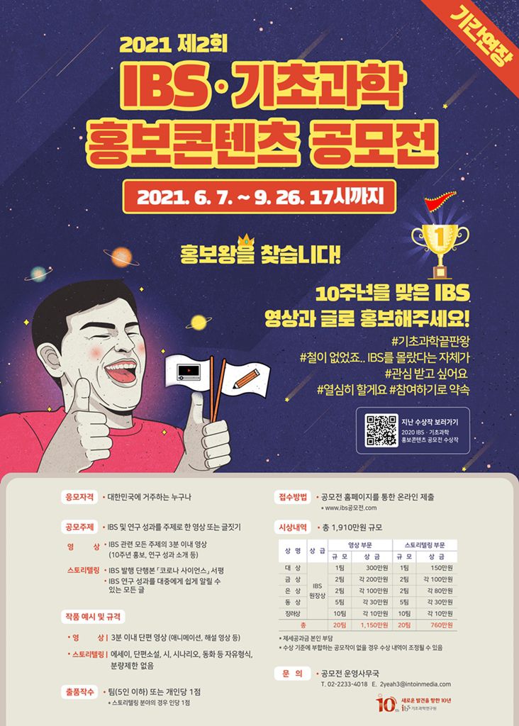 1) 영상 : IBS 관련 모든 주제의 3분 이내 영상(10주년 홍보, 연구성과 소개 등)