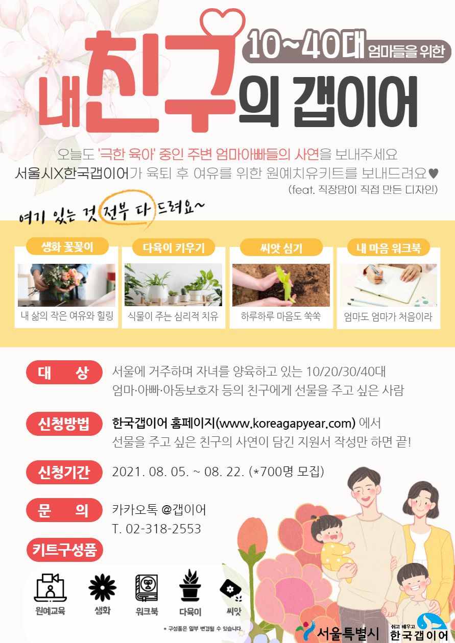 서울시 내 10대, 20대, 30대, 40대 부모님이 더욱 건강한 몸과 마음으로 육아할 수 있도록,