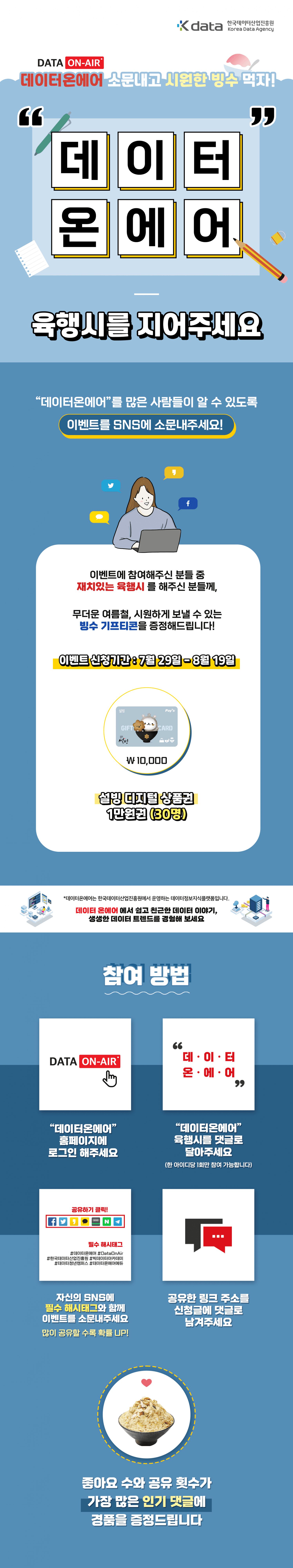 '데이터온에어'로 재치있는 육행시를 작성하고 SNS에 이벤트를 소문내주세요~