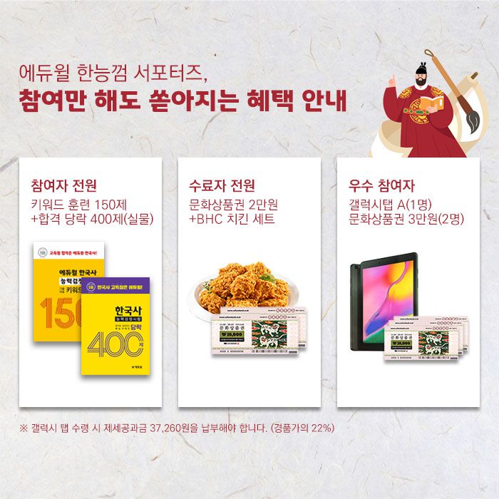 * 갤럭시 탭 수령시 제세공과금 37,260원을 납수해야 합니다. (경품가의 22%)