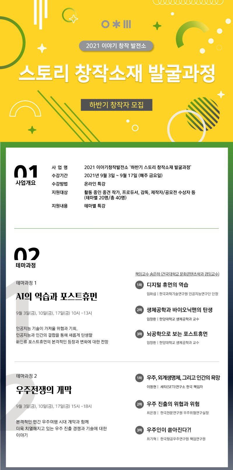 2021 이야기창작발전소 ‘스토리 창작소재 발굴과정’ 하반기 참가자 모집