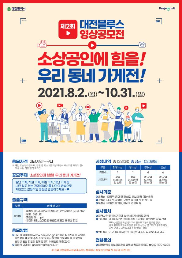 - 대전광역시 홍보담당관실 유튜브 공모전 담당자 (☎042-270-0224)