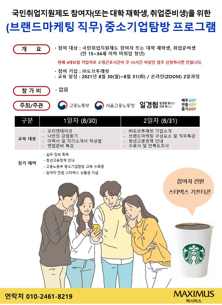 ■ 교육내용 : 나만의 강점찾기, 이력서 및 자기소개서 작성법, 면접준비 특강, 브랜드마케팅 직무특강, 기업소개 등